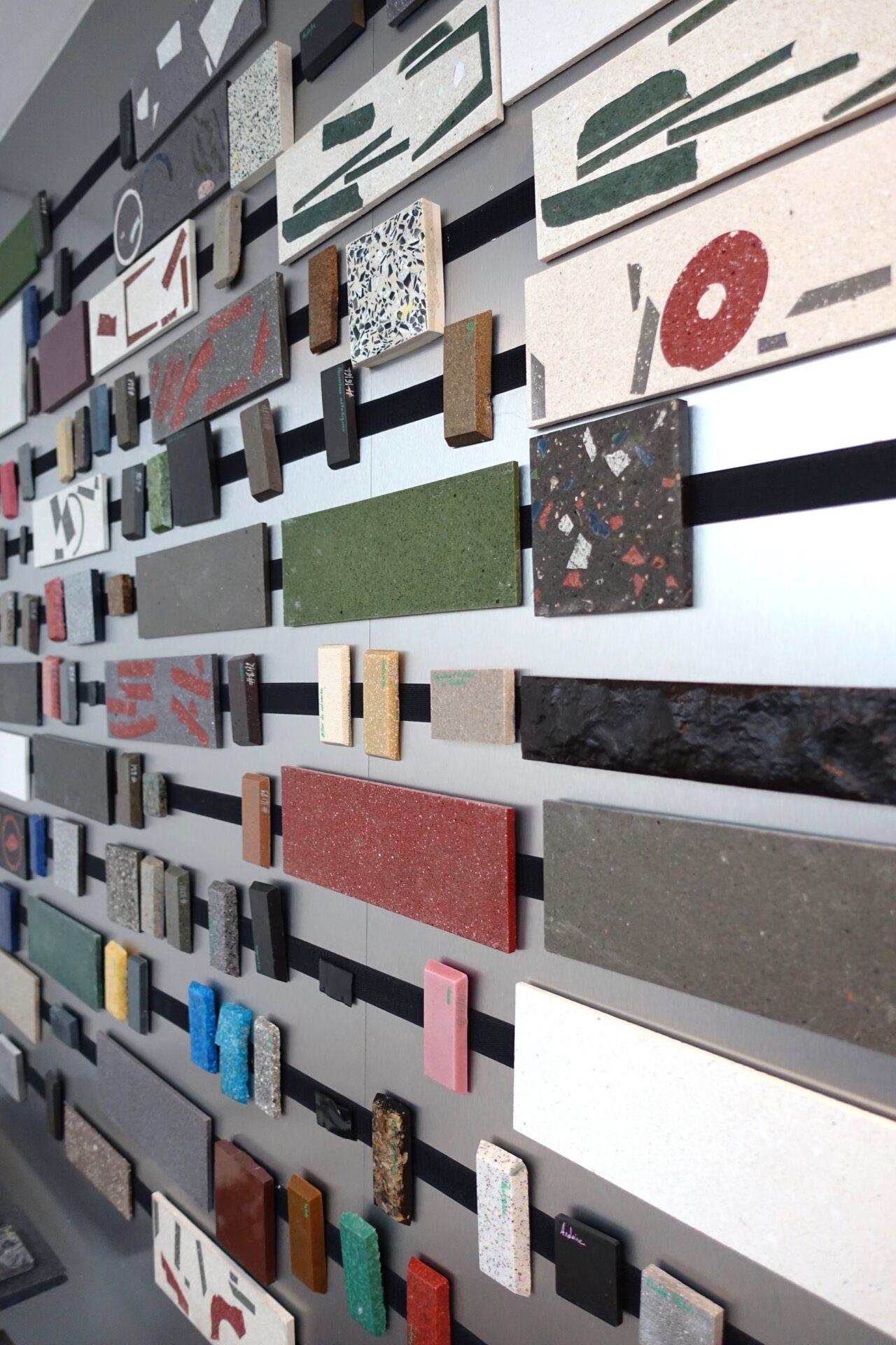 Le processus a aujourd’hui des limites de performances techniques en fonction de l’usage futur du matériau. C’est-à-dire que pour ce qui est du mobilier d’intérieur, des objets de décoration, il va être relativement simple d’utiliser du Wasterial 100% recyclé. Mais concernant des éléments extérieurs ou du carrelage par exemple, la matière va être soumise à des intempéries, du gel, des changements de température. Alors pour atteindre une certaine performance technique le liant utilisé dans le Wasterial sera non recyclé. Des recherches sont néanmoins en cours pour atteindre les performances techniques demandées avec un liant bio sourcé. Ce qui signifie qu’il serait produit à partir d’éléments qui minimisent l’impact environnemental.
