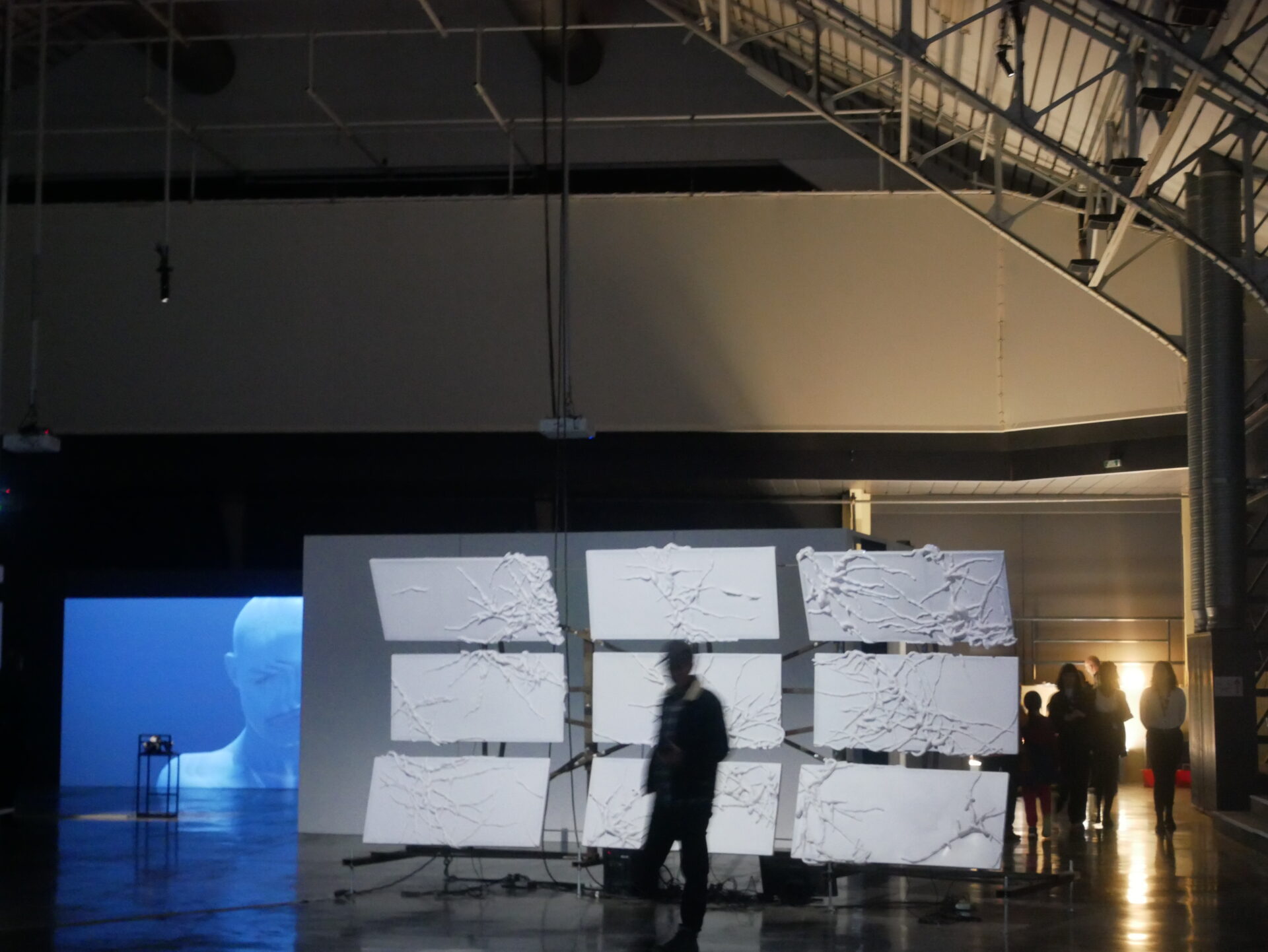 Un large espace d’exposition plongé dans la pénombre révèle des œuvres hétéroclites de toutes formes, agencées de façon à former un tout étonnamment homogène. Un jeu d’ombres et lumières spectrale crée une atmosphère hors du temps : la perte de repères permet d’envisager une approche plus sensorielle. En entrant, le spectateur sort de sa passivité contemplative : il est appelé à s’impliquer physiquement et psychologiquement au travers d’œuvres interactives. Le sens suggéré des œuvres laisse souvent place à la libre interprétation du public.