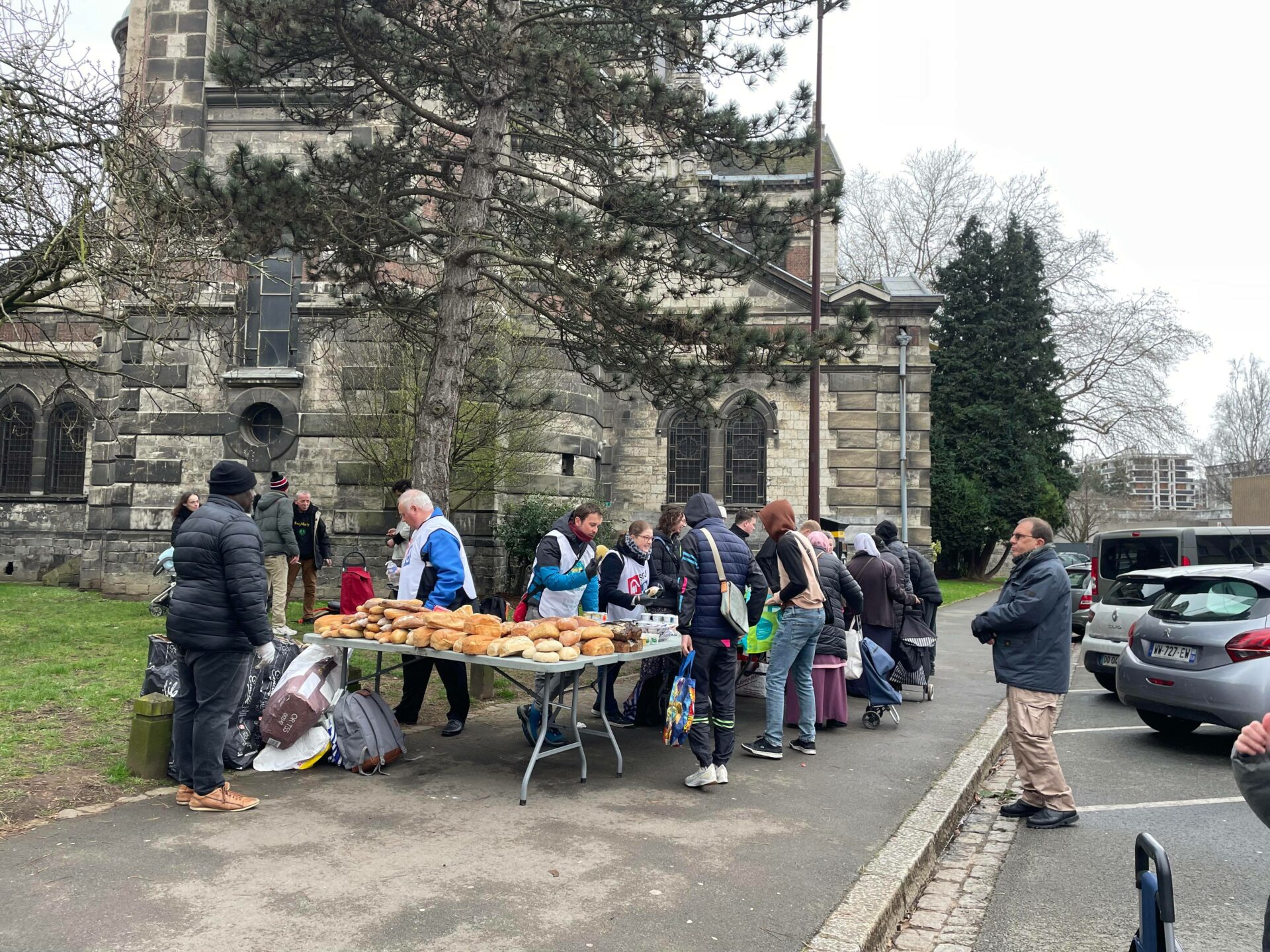 « Tout le monde est susceptible de se retrouver dans une situation précaire un jour ou l’autre », selon Hussein Ben Faour, président de l’association SDJ Agir Ensemble Lille. Son association, composée exclusivement de bénévoles et auto-financée, organise une maraude à Lille, derrière l’Église Saint-Sauveur. Tous les dimanches de 15h à 16h, elle réunit environ une centaine de personnes dans le besoin. Sur les étals, des produits de première nécessité : beurre, pain, lentilles, riz, café, nourriture pour bébés… Contrairement aux idées reçues, ce ne sont pas seulement des sans-abri qui viennent s’approvisionner auprès de l’association, mais aussi des familles dont le frigo demeure vide le 15 du mois, ou des étudiants en situation précaire. Ceux qui s’approvisionnent tous les dimanches là-bas économisent environ 300€ par mois selon le président de l’association. SDJ Agir Ensemble se fournit dans des supermarchés à Lille, qui leur donnent la nourriture qui leur reste en fin de journée.