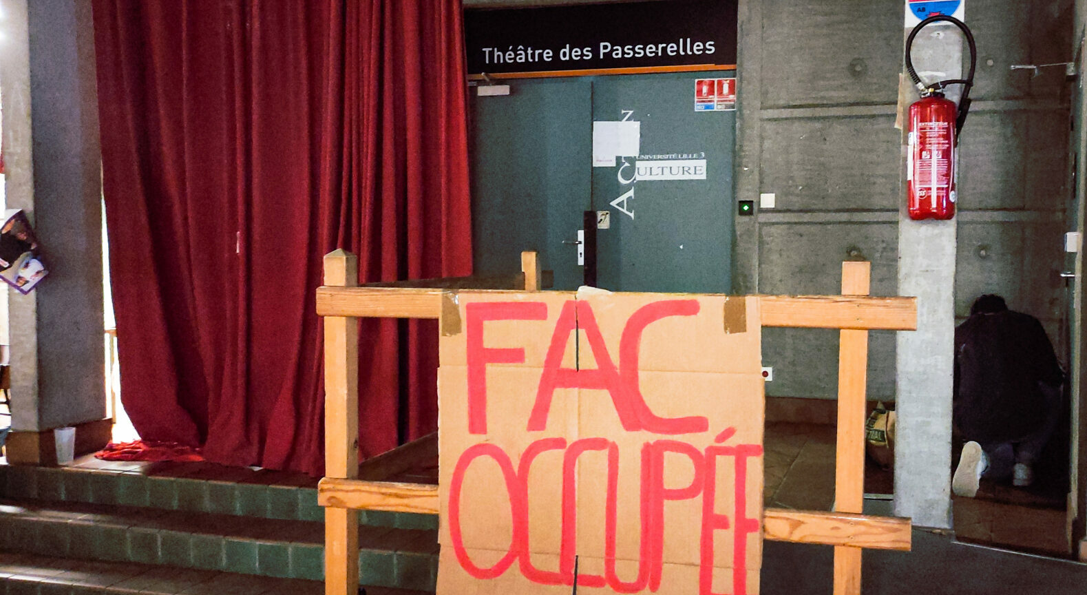 Mardi 4 avril, 20h30. Cela fait une semaine que des étudiants lillois ont lancé “l’occupation” du Théâtre des Passerelles, sur le campus Pont-de-Bois. La crise sociale actuelle, liée à la réforme des retraites, serait la cause de cette mobilisation inédite.