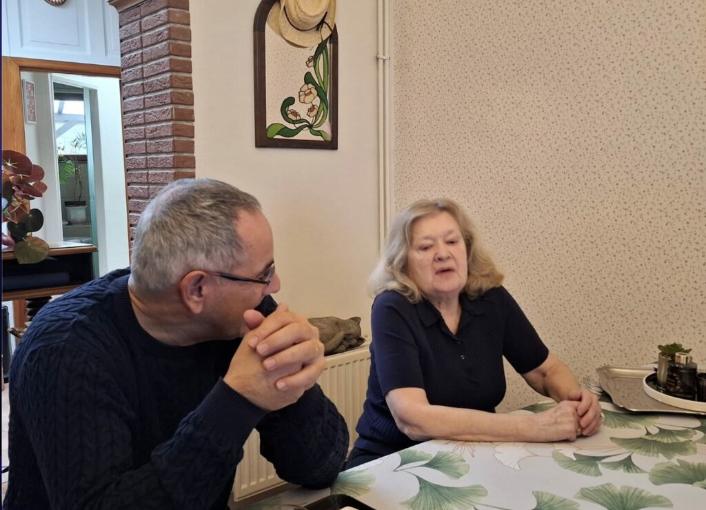 Des cheveux blancs, un chemisier bleu marine, et un grand sourire au visage, France Annick Lecoq est ce qu’elle appelle une « bigleuse ». Cette joyeuse retraitée de Tourcoing ne distingue que la lumière du jour, et parfois, quand l’exposition s’y prête, les traits d’une personne. Pourtant, même si le sourire de France-Annick illumine la pièce, tout n’est pas facile tous les jours. « Moi je ne le dis pas, mais d’autres l’affirment : le quotidien est lourd. » Et pour l’alléger un peu, elle a souhaité avoir un binôme lorsque l’association est arrivée dans la région. C’est ainsi qu’elle est mise en contact avec Carlos Rodrigues, qui, bientôt à la retraite, veut s’engager.