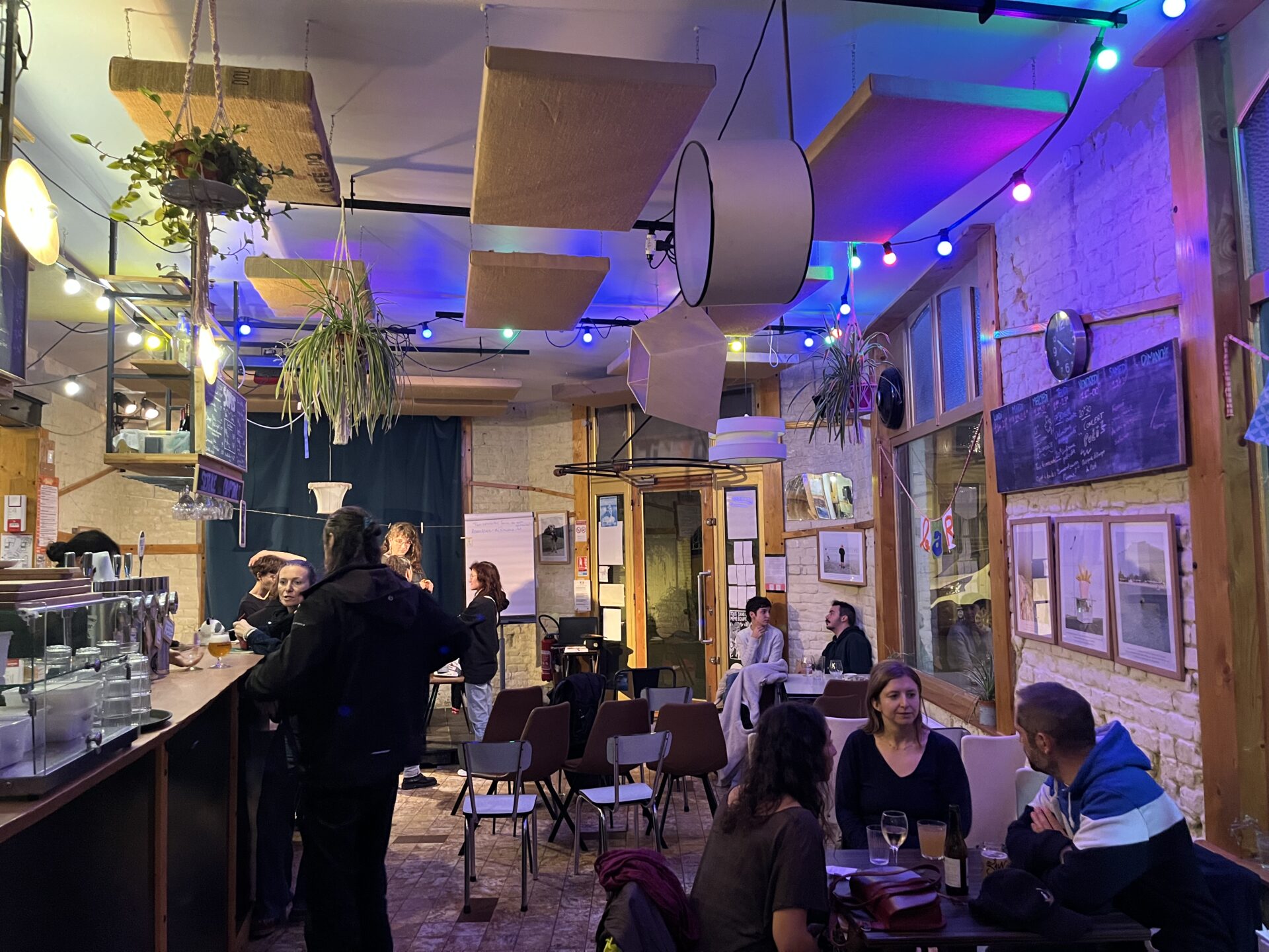 Cette scène est plutôt habituelle, le barman continue de ranger ses verres, et s’accoude de temps en temps au comptoir pour prendre la température de la salle. Quelques heures plus tôt, c’était une table ouverte urbanisme et citoyenneté qui était organisée. Un thème tout à fait différent, mais dont l’objectif reste le même : faire vivre le quartier grâce à des événements ludiques. Arthur et Léa, deux clients s’en félicitent : « C’est une démarche qui vient d’en bas », elle permet de créer du lien dans une « safe place », où les discussions sont permises sans rapports de domination. « Le problème quand t’allumes ta télé, c’est que t’as quatre/cinq types sur un plateau qui parlent comme si tu devais penser une chose ou une autre », explique Arthur.